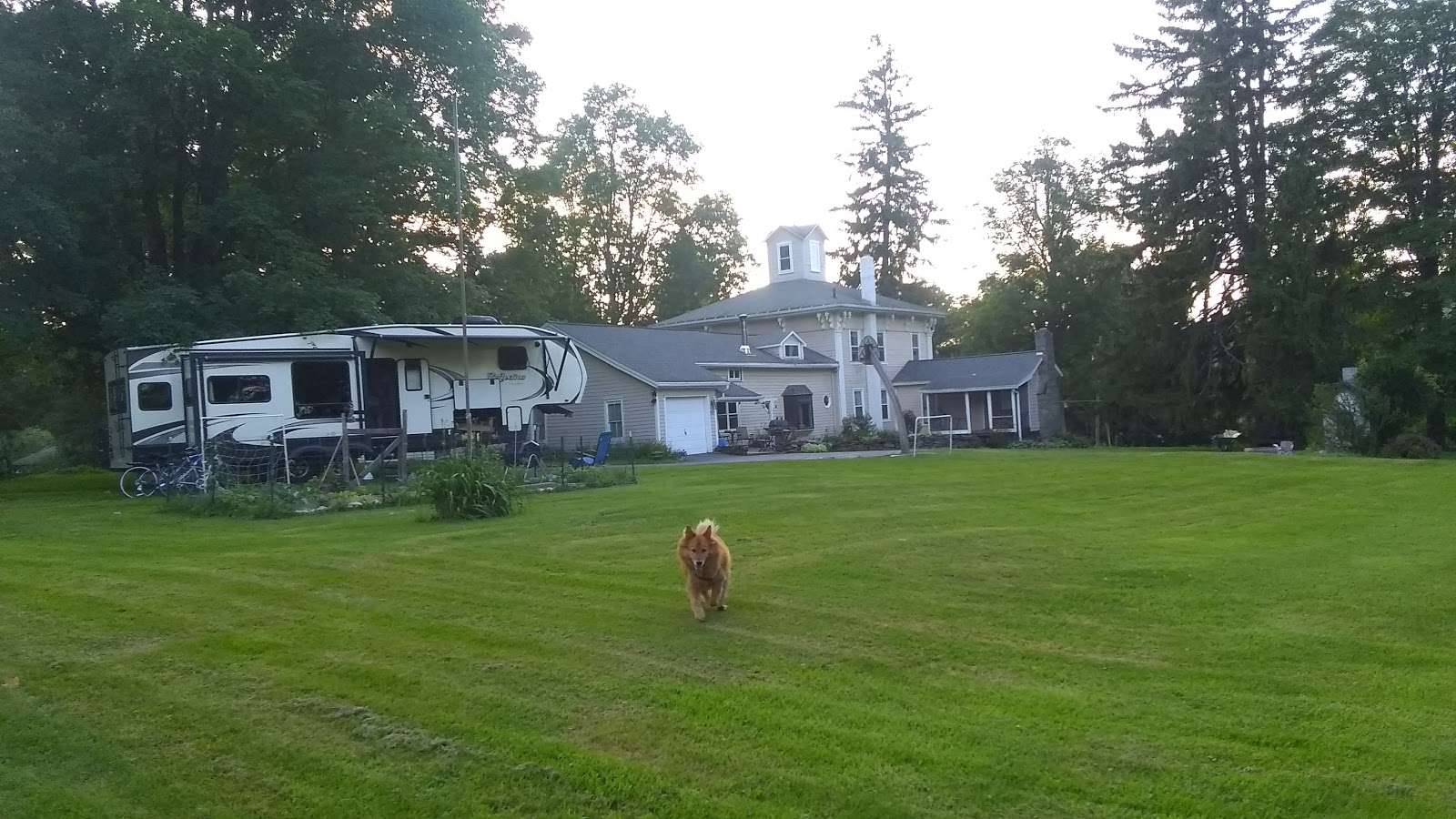 If the weather is nice we do an evening walk up the road with the Dogs.